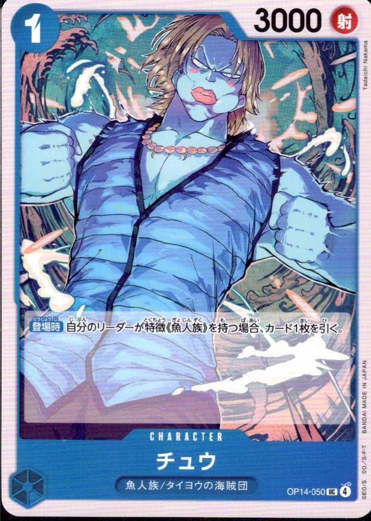 【登場時】自分のリーダーが特徴《魚人族》を持つ場合、カード1枚を引く。
