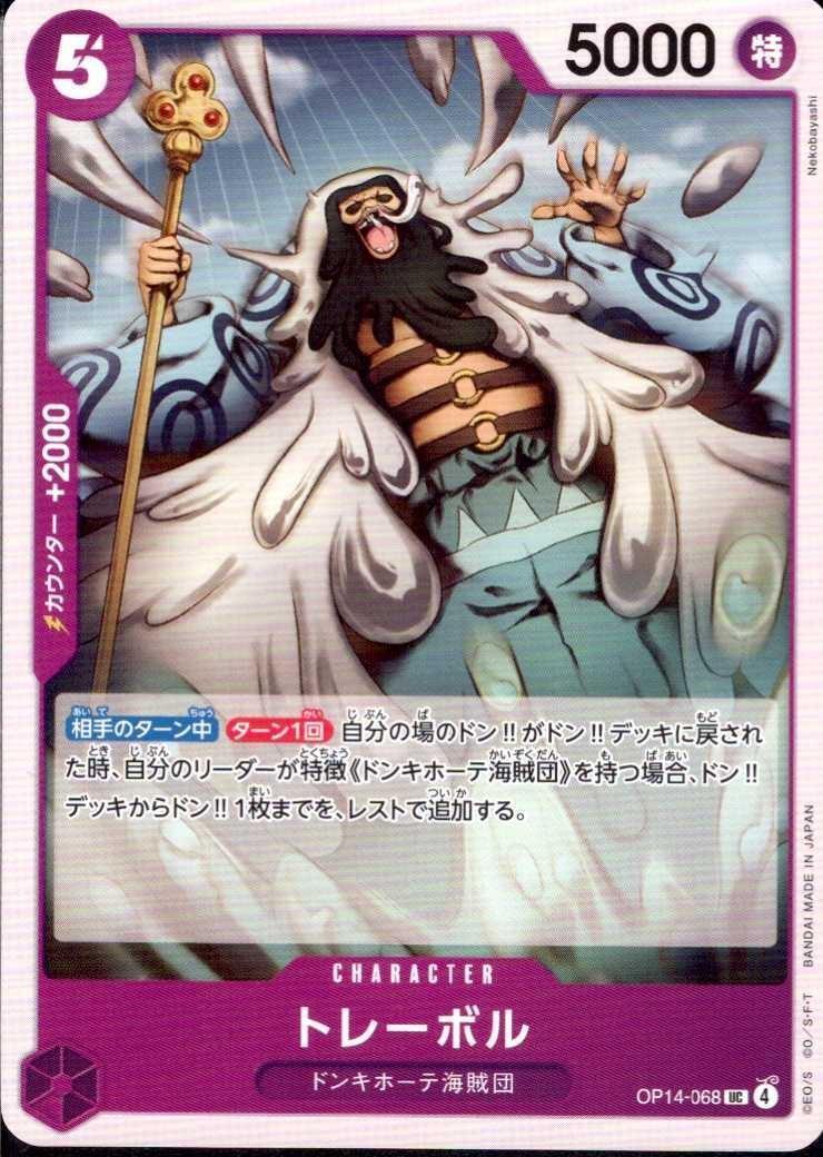 【相手のターン中】【ターン1回】自分の場のドン‼がドン‼デッキに戻された時、自分のリーダーが特徴《ドンキホーテ海賊団》を持つ場合、ドン‼デッキからドン‼1枚までを、レストで追加する。