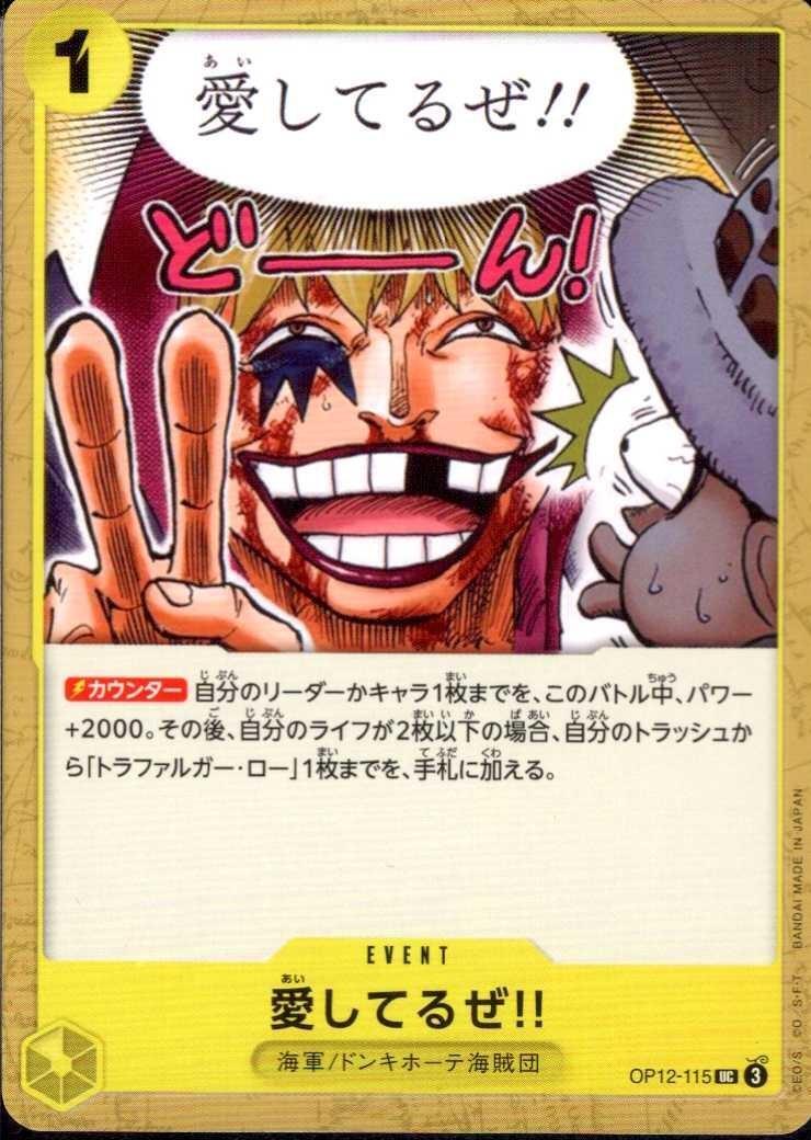 【カウンター】自分のリーダーかキャラ1枚までを、このバトル中、パワー+2000。その後、自分のライフが2枚以下の場合、自分のトラッシュから「トラファルガー・ロー」1枚までを、手札に加える。