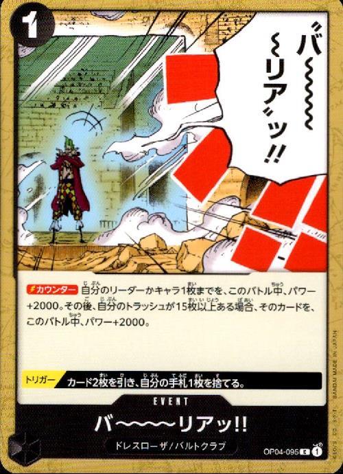 【カウンター】自分のリーダーかキャラ1枚までを、このバトル中、パワー+2000。その後、自分のトラッシュが15枚以上ある場合、そのカードを、このバトル中、パワー+2000。