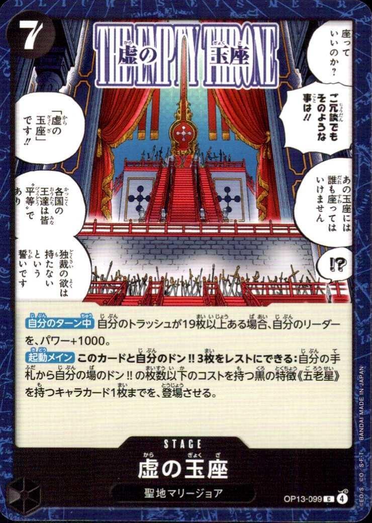 【起動メイン】このカードと自分のドン‼3枚をレストにできる:自分の手札から自分の場のドン‼の枚数以下のコストを持つ黒の特徴《五老星》を持つキャラカード1枚までを、登場させる。
