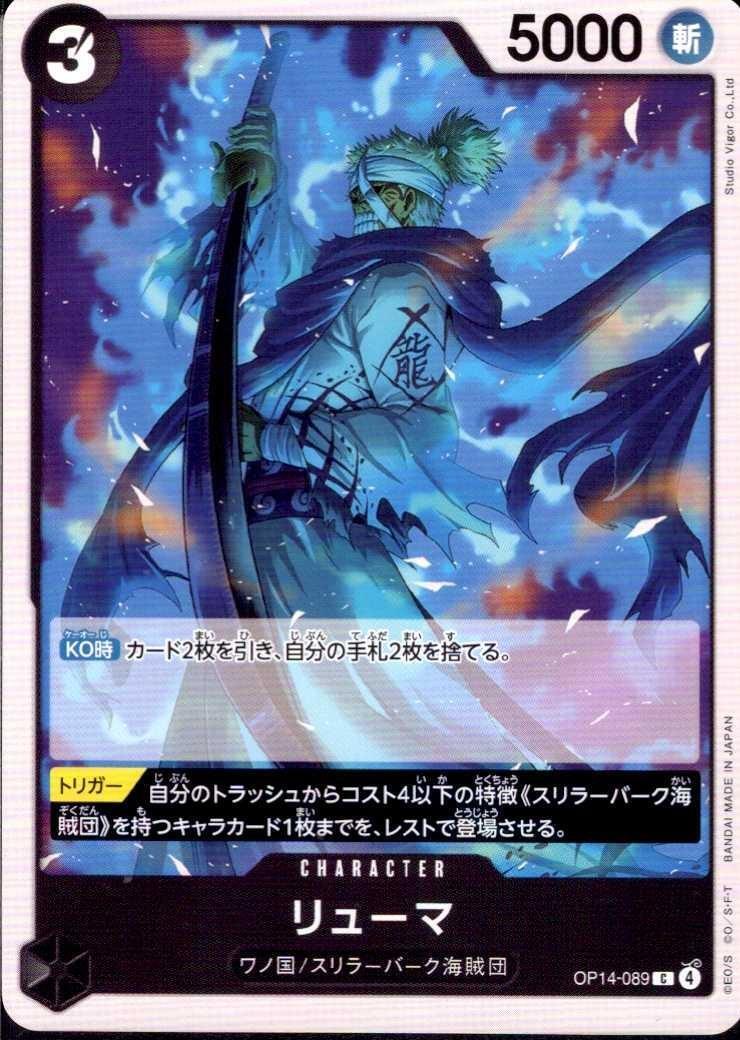 トリガー【トリガー】自分のトラッシュからコスト4以下の特徴《スリラーバーク海賊団》を持つキャラカード1枚までを、レストで登場させる。