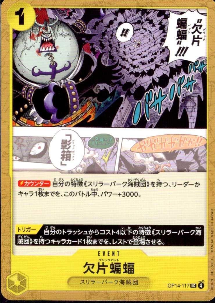 【カウンター】自分の特徴《スリラーバーク海賊団》を持つ、リーダーかキャラ1枚までを、このバトル中、パワー+3000。