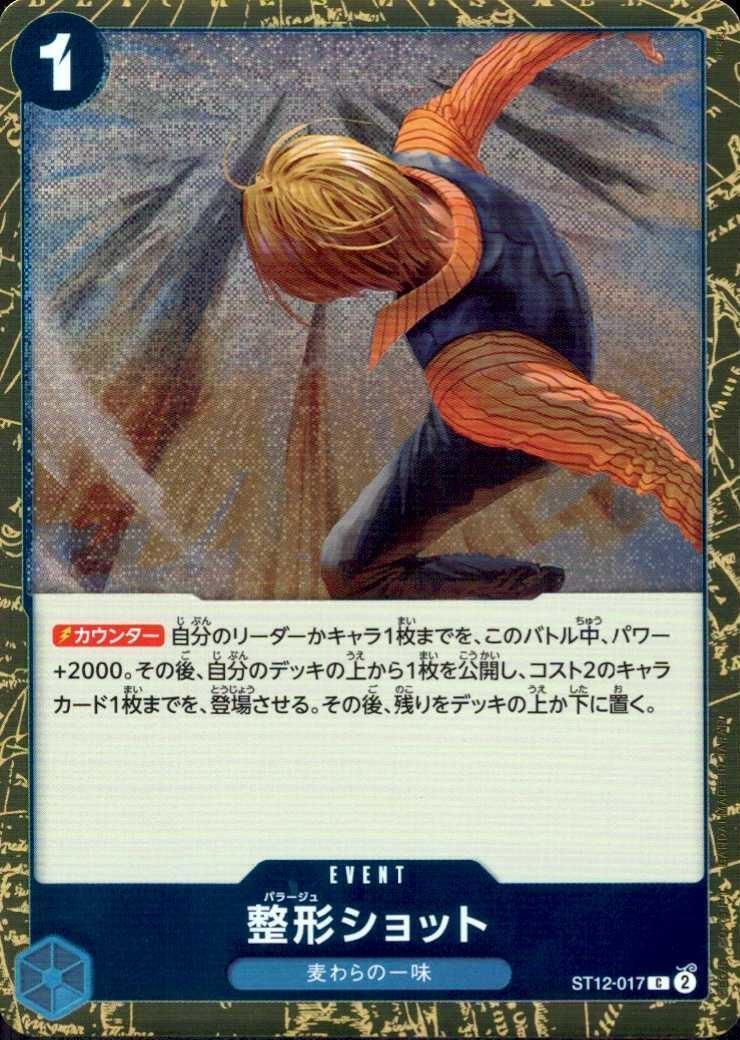 【カウンター】自分のリーダーかキャラ1枚までを、このバトル中、パワー+2000。その後、自分のデッキの上から1枚を公開し、コスト2のキャラカード1枚までを、登場させる。その後、残りをデッキの上か下に置く。