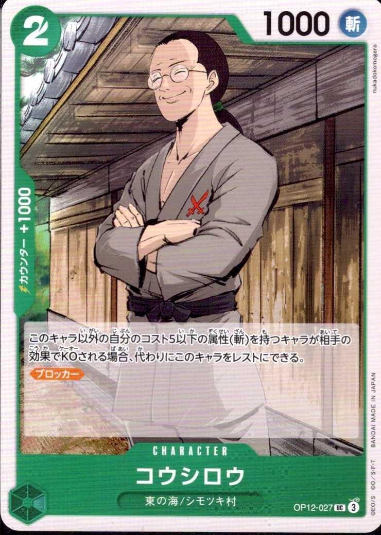 このキャラ以外の自分のコスト5以下の属性(斬)を持つキャラが相手の効果でKOされる場合、代わりにこのキャラをレストにできる。