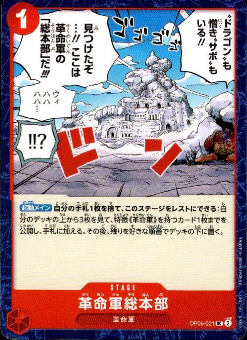 【起動メイン】自分の手札1枚を捨て、このステージをレストにできる:自分のデッキの上から3枚を見て、特徴《革命軍》を持つカード1枚までを公開し、手札に加える。その後、残りを好きな順番でデッキの下に置く。